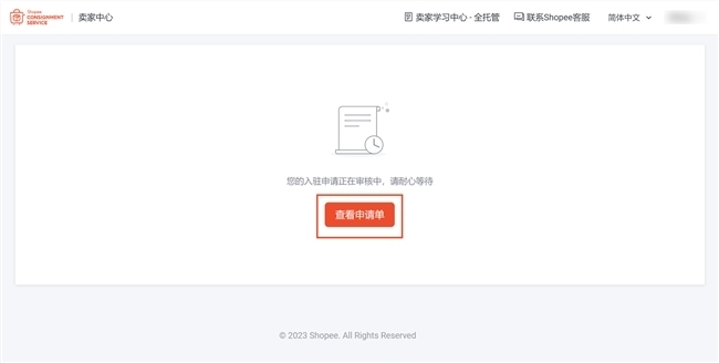 (图示:Shopee全托管卖家中心-入驻审核进度查询界面)