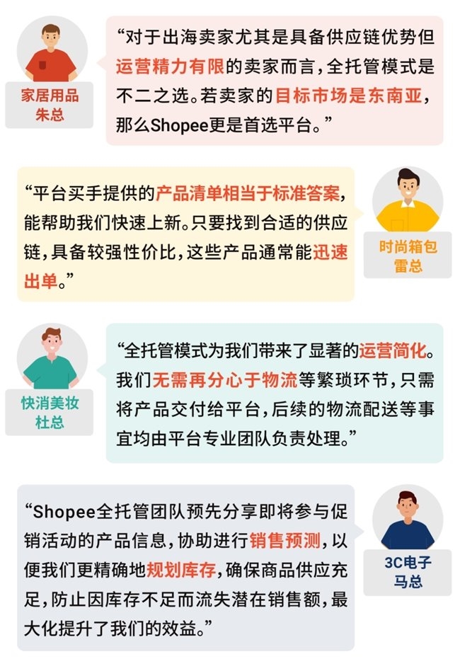 为什么出海首选Shopee全托管?听听这些真实操盘的卖家怎么说: