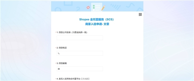 (图示:Shopee全托管入驻通道-表单填写界面)