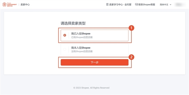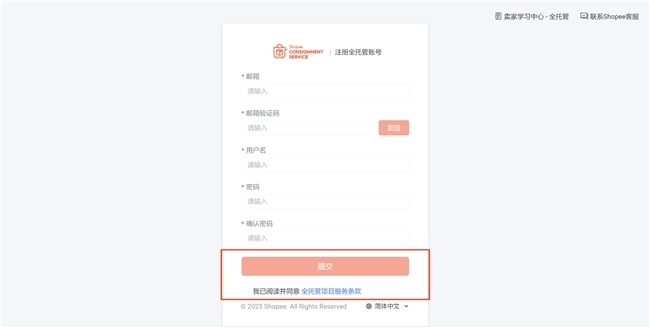2、注册Shopee全托管账号: