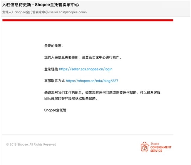 若审核未通过,您将收到一封《入驻信息待更新-Shopee全托管卖家中心》邮件。