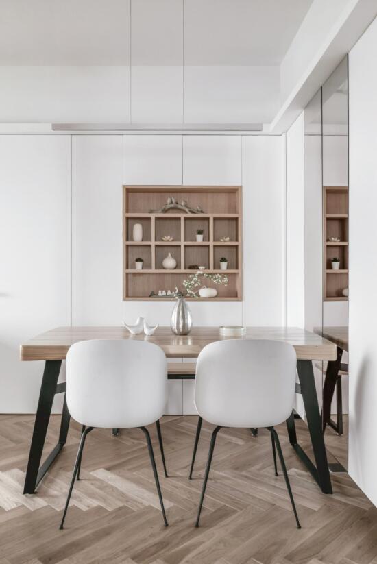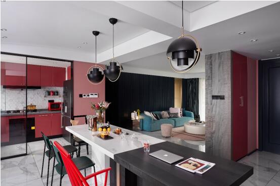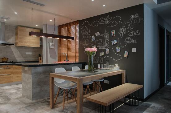 2、餐桌可以使用折叠家具,或和岛台结合在一体,能满足不同人数的就餐需求,既可以服务于日常,也方便招待更多的朋友。