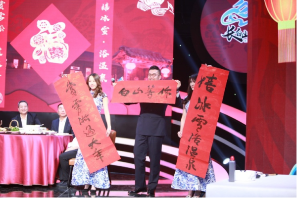 情在白山之“我在白山过大年”环节,主持人与嘉宾欢聚一堂,一起品尝白山本地最具特色的“年夜饭”,嘉宾畅聊民俗文化,书法、绘画、冰灯、春联、美食等白山特色引来了阵阵掌声,感受传统文化的魅力,现场欢乐喜庆的气氛中,洋溢着浓郁的文化气息。